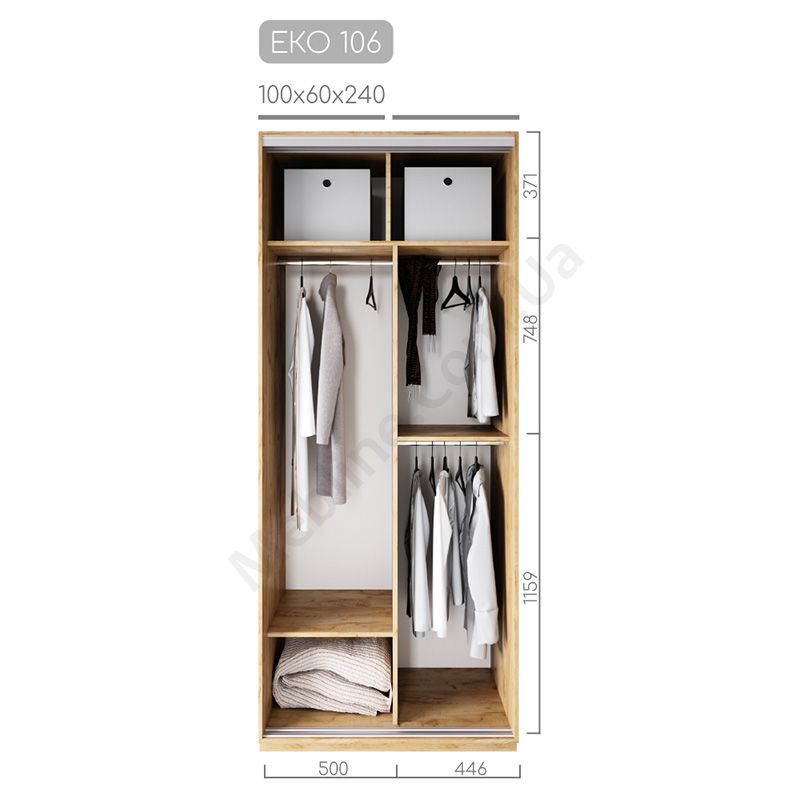 Дводверна шафа-купе шириною 100 см, глибиною 60 см, висотою 220 чи 240 см
