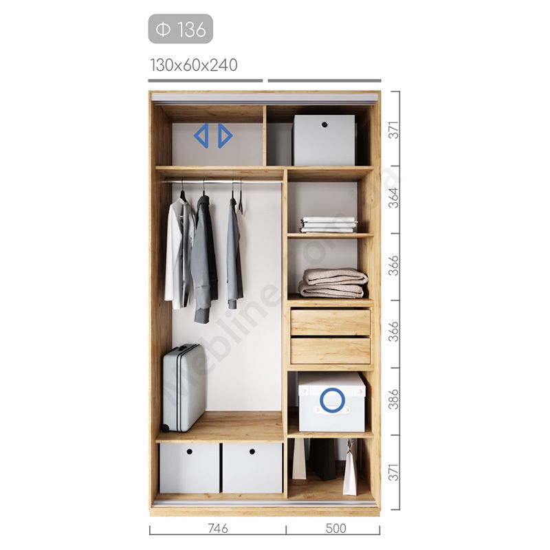 Дводверна шафа-купе шириною 130 см, глибиною 60 см, висотою 220 чи 240 см