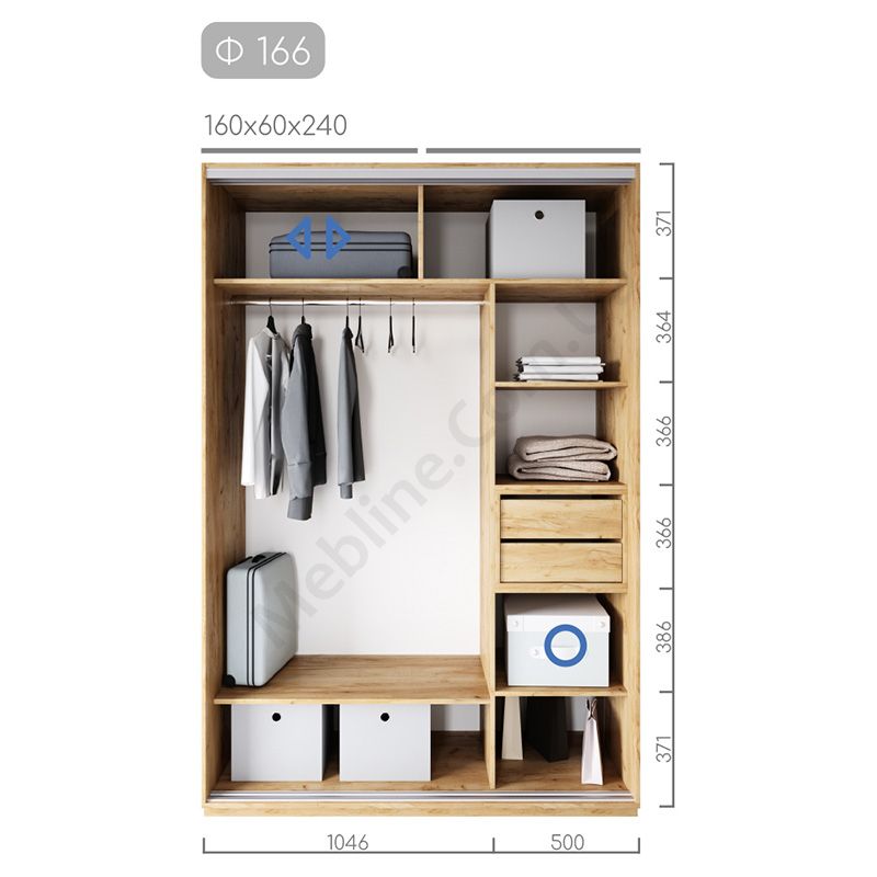 Дводверна шафа-купе шириною 160 см, глибиною 60 см, висотою 220 чи 240 см
