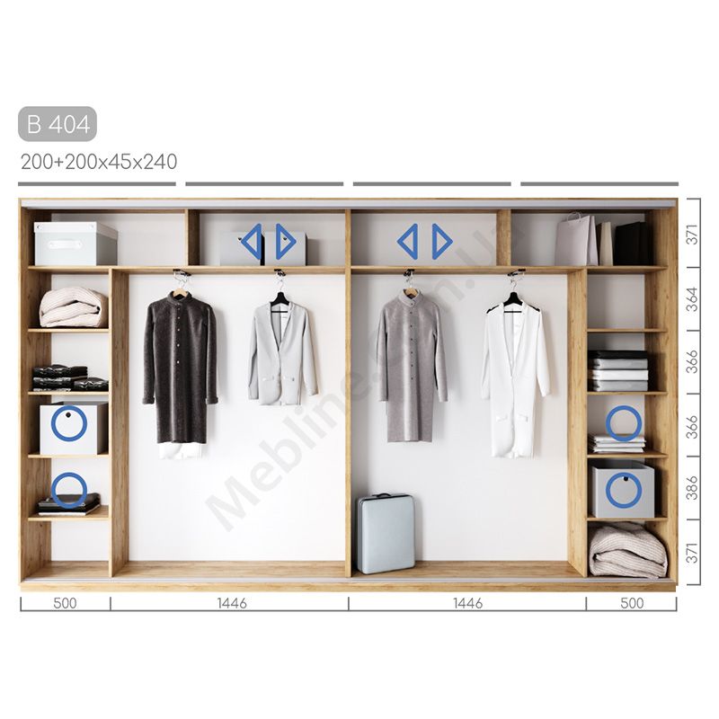 Чотиридверна шафа-купе шириною 400 см, глибиною 45 см, висотою 220 чи 240 см