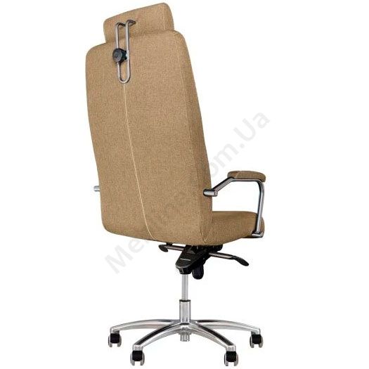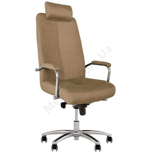 Крісло для керівника з регульованим підголівником, м’якими підлокітниками, на алюмінієвій основі, фіксацією в 5 положеннях.