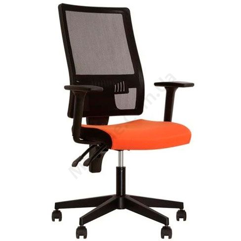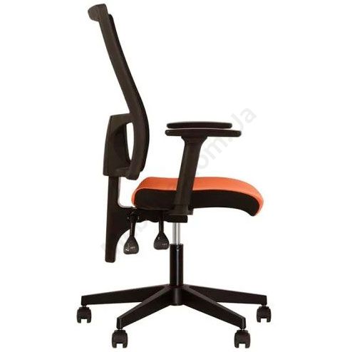 Класичне операторське крісло з сітчастою спинкою, регульованими підлокітниками, фіксацією в будь-якому положенні, на пластиковій основі.