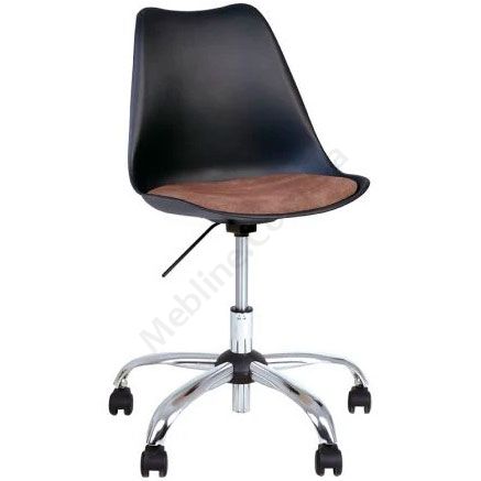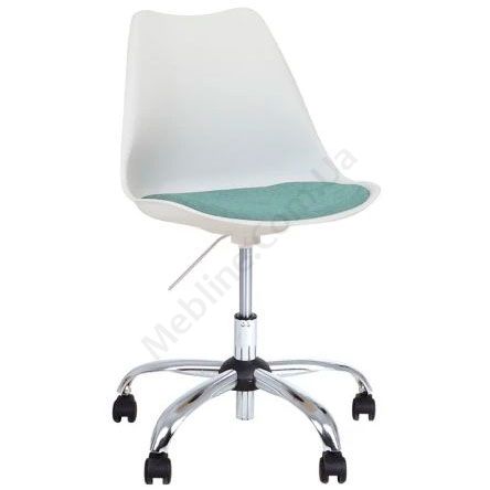 Просте операторське крісло з пластиковою спинкою, без підлокітників, з регулюванням висоти, на хромованій основі.