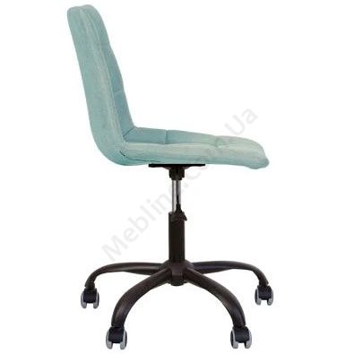 Просте операторське крісло без підлокітників, з регулюванням висоти, на металевій основі.