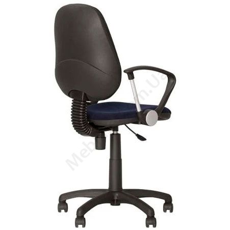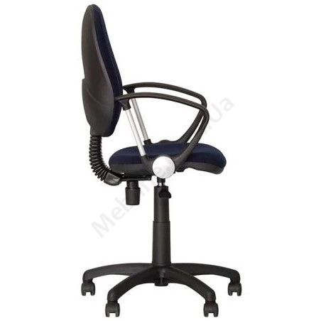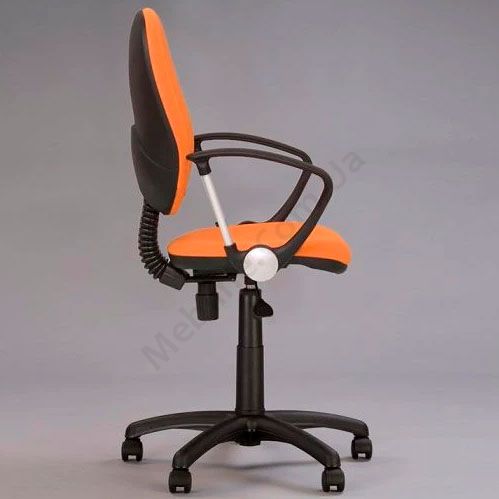 Елегантне операторське крісло з пластиковими підлокітниками оригінальної форми, функцією постійного гойдання, на пластиковій основі.