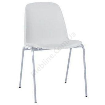 Стілець для відвідувачів на алюмінієвій основі з пластиковим сидінням і спинкою.