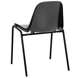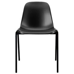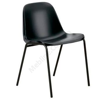 Стілець для відвідувачів на чорній металевій основі з пластиковим сидінням і спинкою.