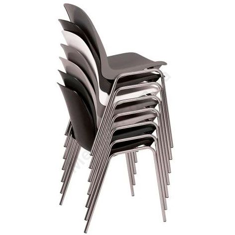 Стілець для відвідувачів на хромованій основі з пластиковим сидінням і спинкою.
