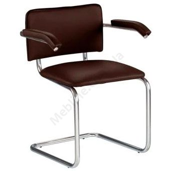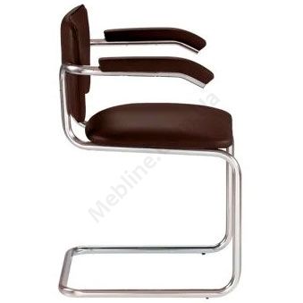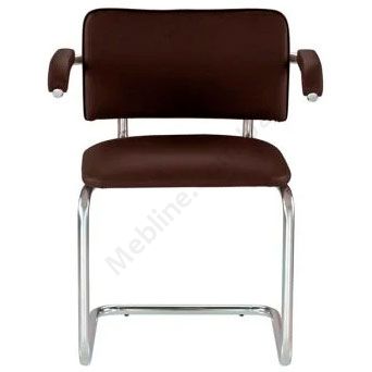 Просте крісло для конференцій на хромованій базі з м’якими підлокітниками.