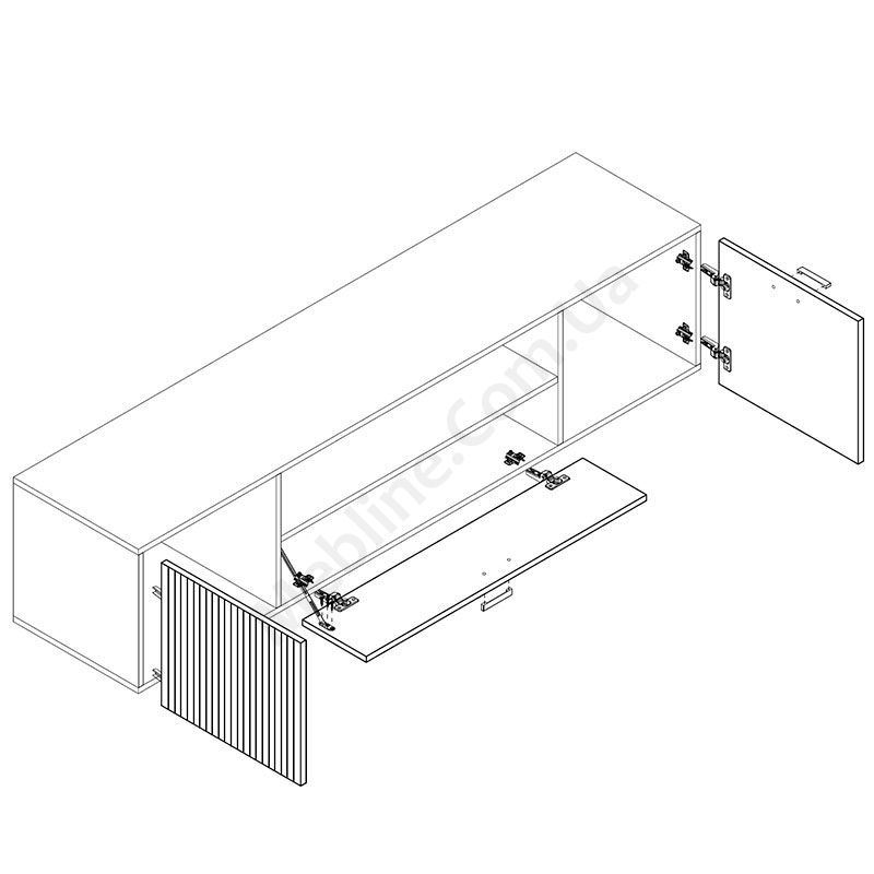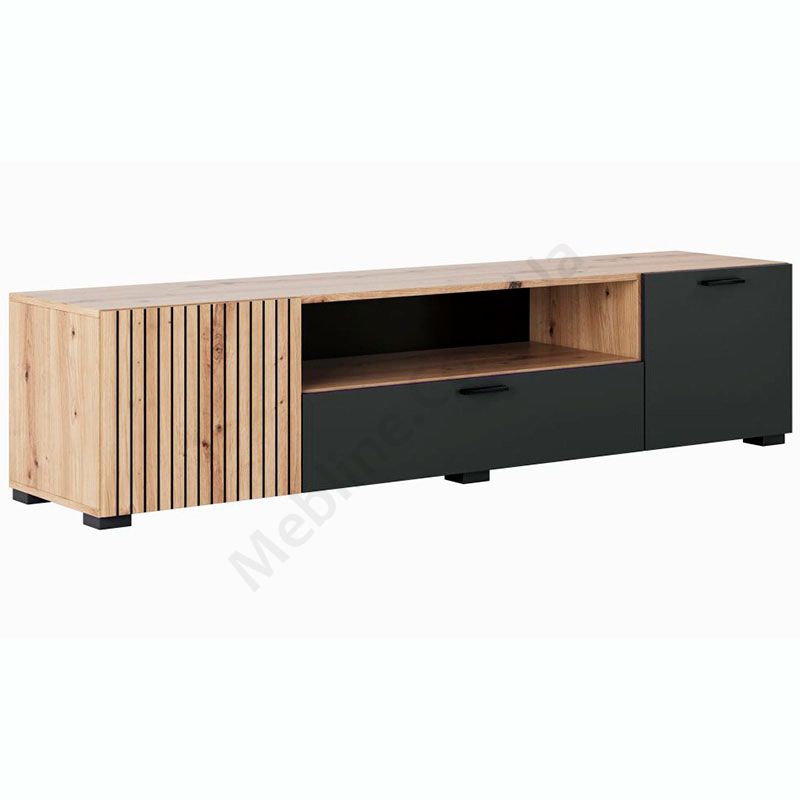 Тумба під телевізор з відкритою полицею та дверцятами.