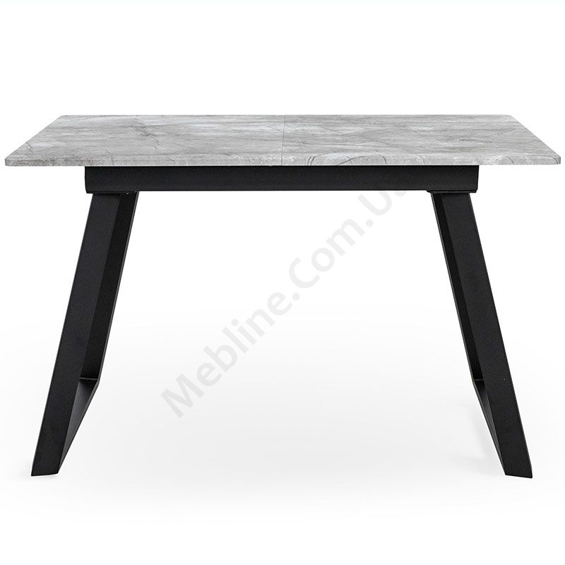 Обідній стіл із розкладною стільницею на металевих ніжках.
