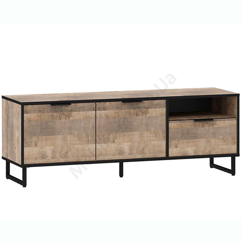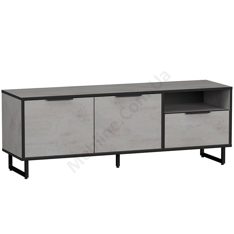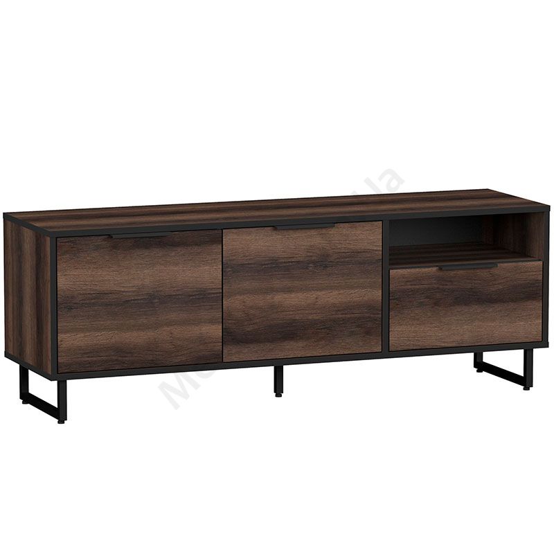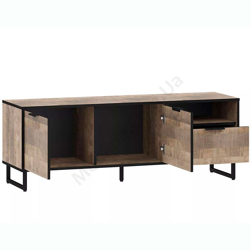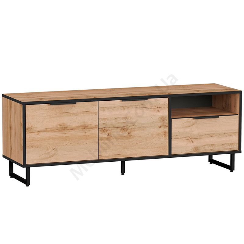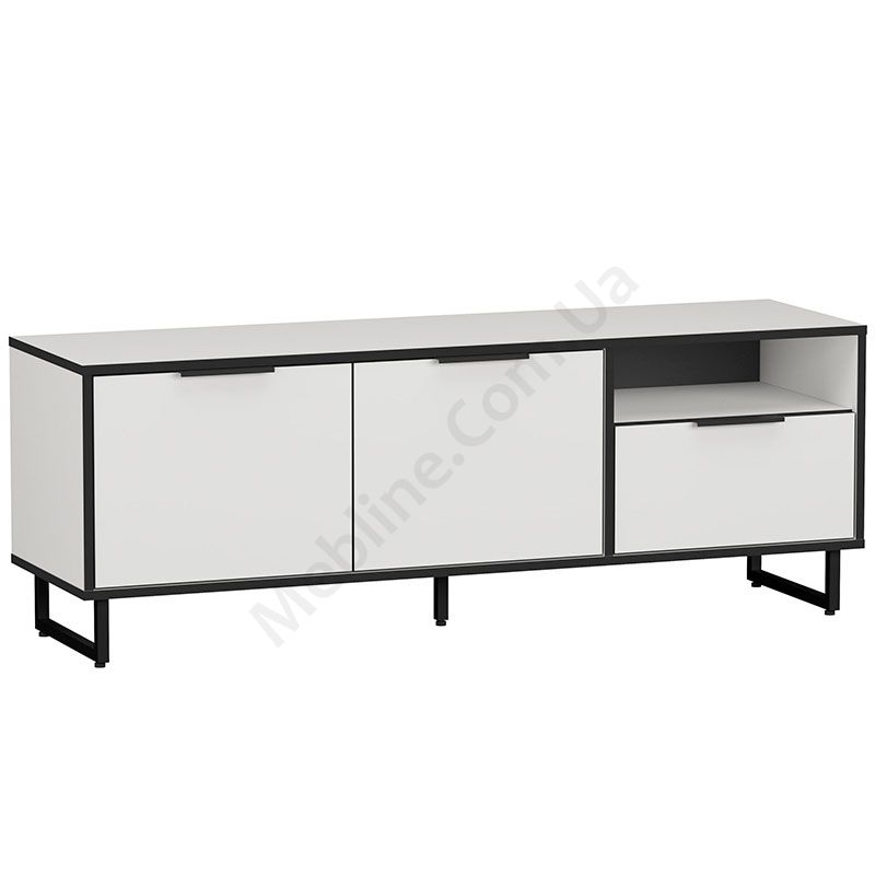Тумба під телевізор з дверцятами, шухлядою та відкритою секцією.