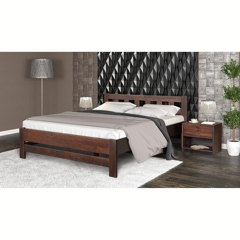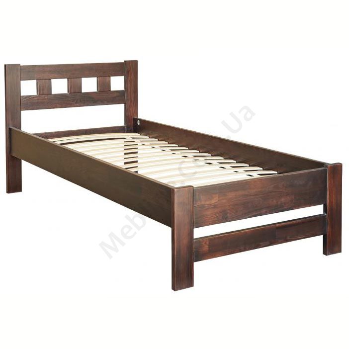 Односпальне ліжко з натурального дерева бука з твердим узголів’ям.