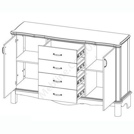 Комод в класичному стилі на ніжках з дверцятами та висувними шухлядами.