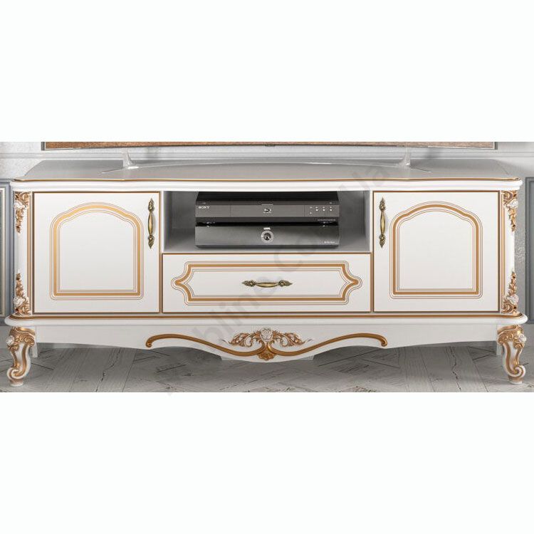 Тумба під телевізор в класичному стилі з дверцятами, висувною шухлядою та полицею.