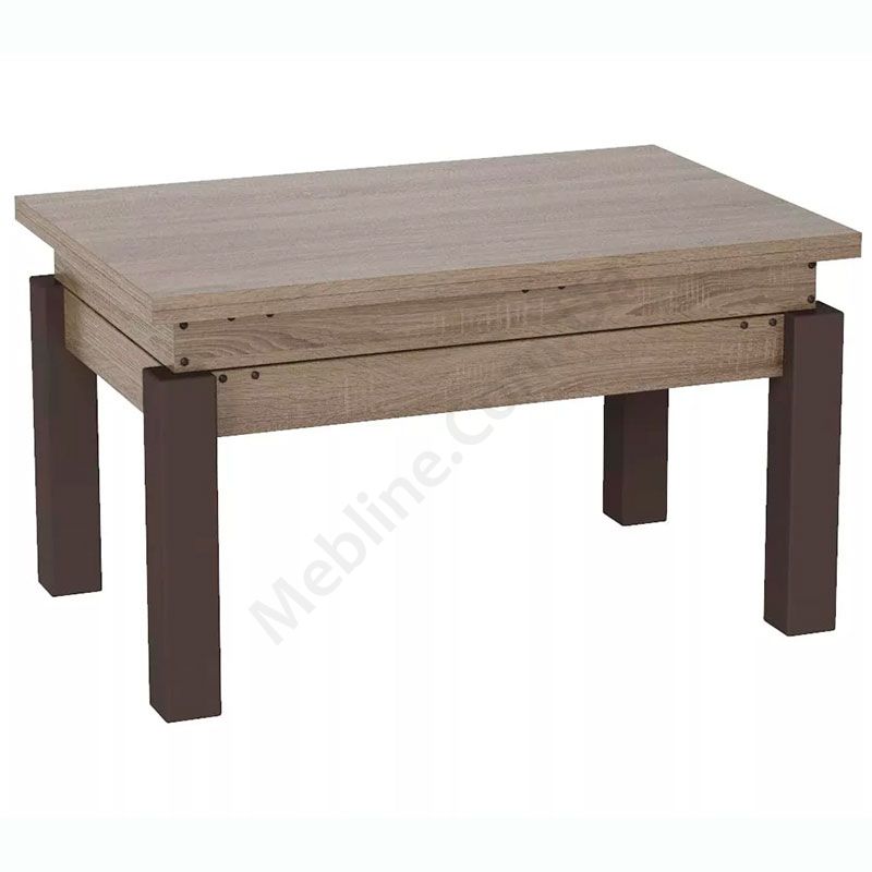 Журнальний стіл на дерев’яних ніжках венге, який трансформується в обідній з ДСП стільницею кольору дуб вінтаж оксид.