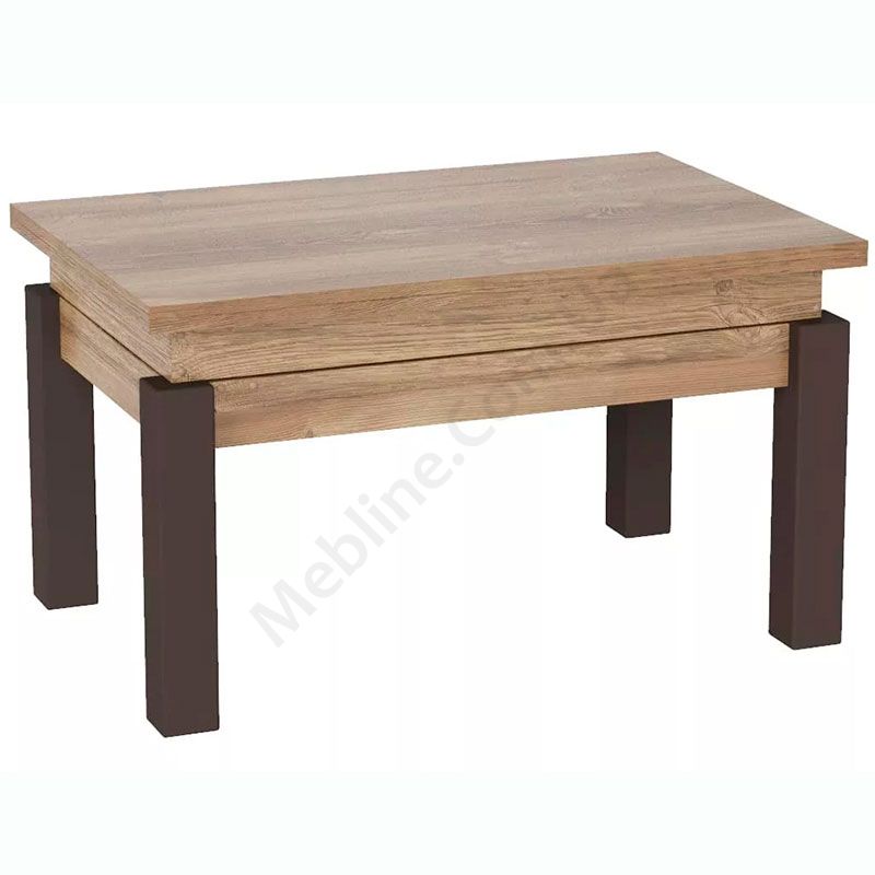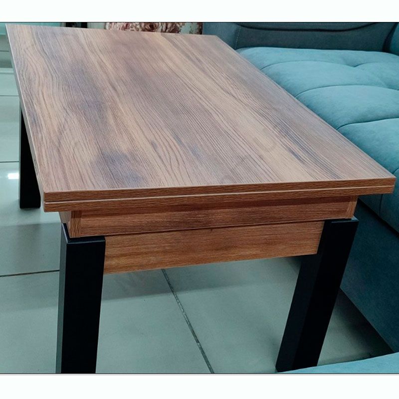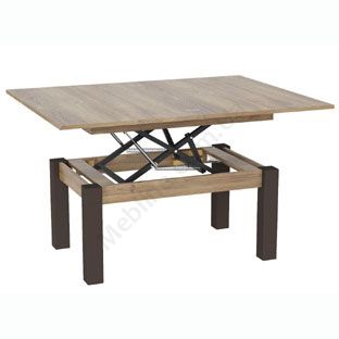 Журнальний стіл на дерев’яних ніжках венге, який трансформується в обідній з ДСП стільницею кольору дуб бароко.