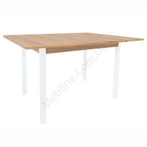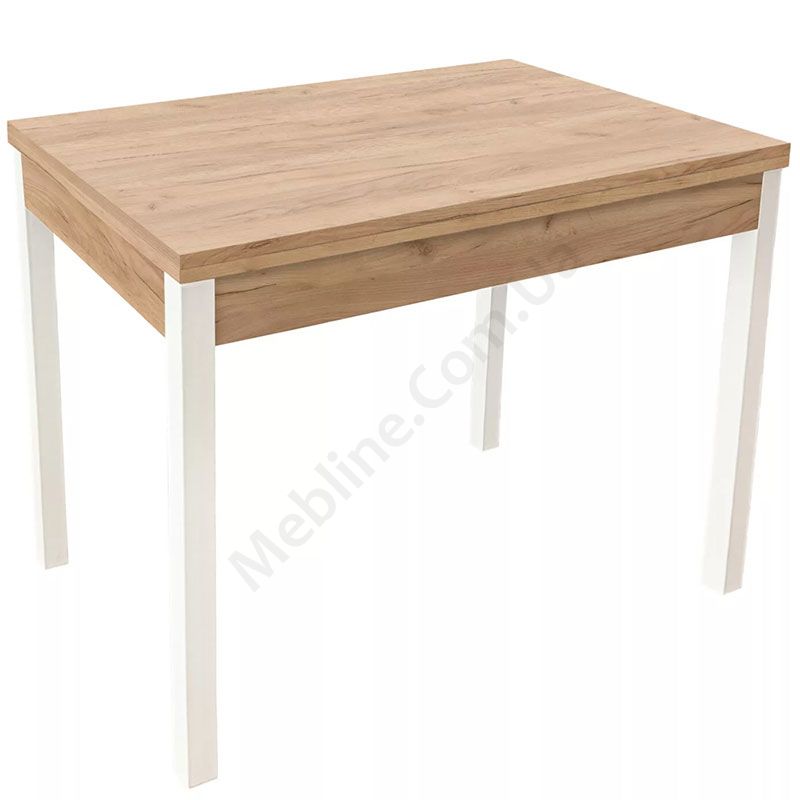 Кухонний розкладний стіл на білих металевих ніжках з ДСП стільницею кольору дуб крафт золотий.