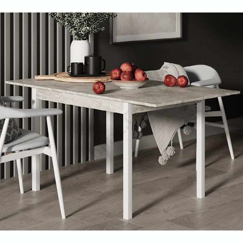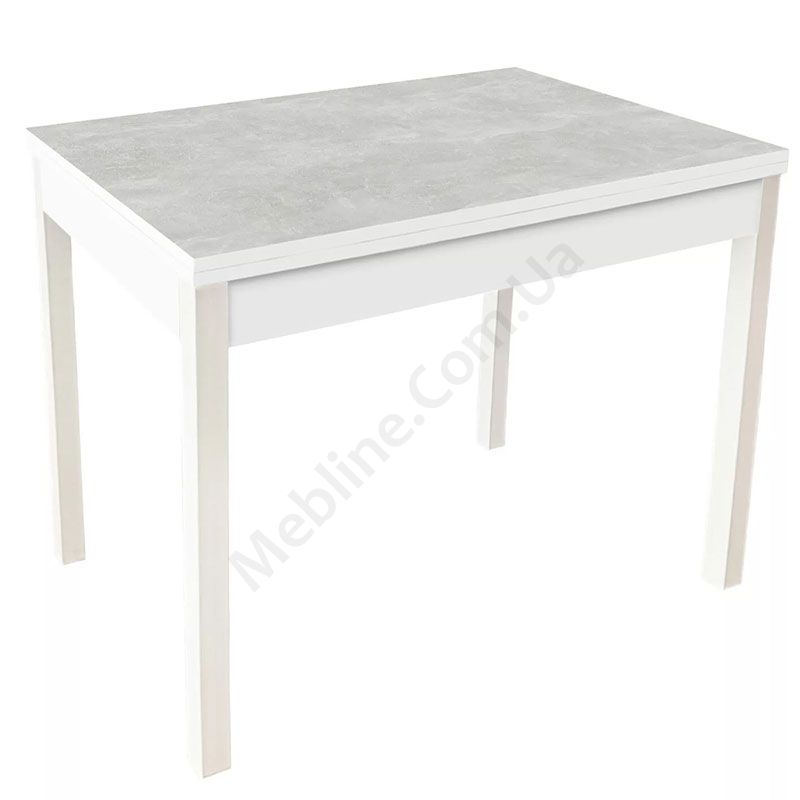 Кухонний розкладний стіл на білих металевих ніжках з ДСП стільницею кольору ательє світлий.