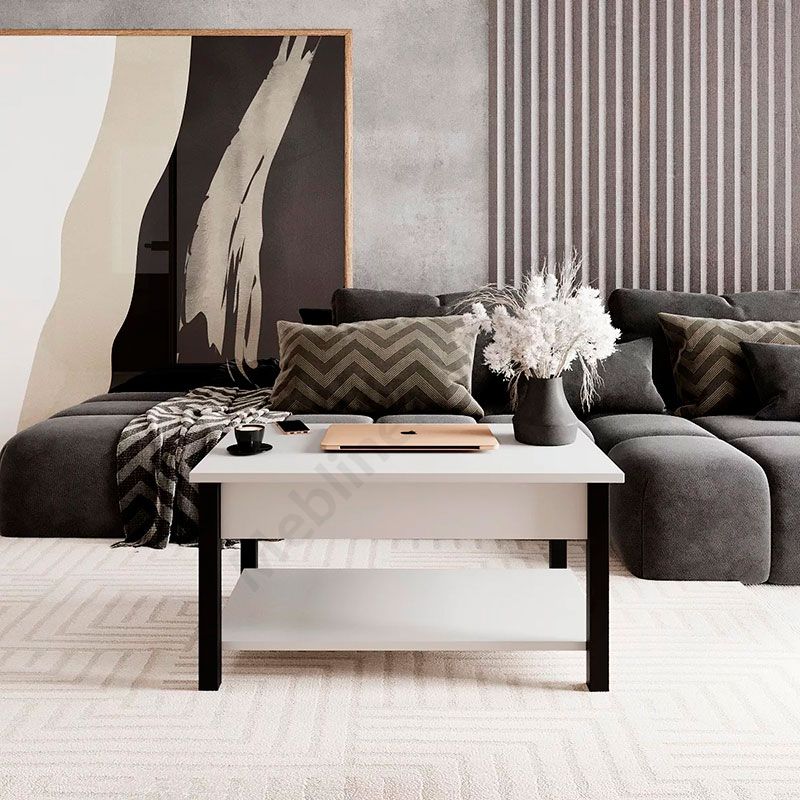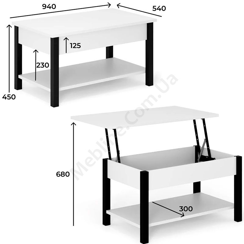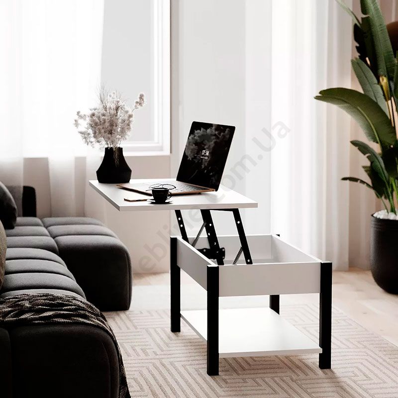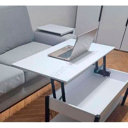 Журнальний стіл з підйомною стільницею на металевих ніжках.