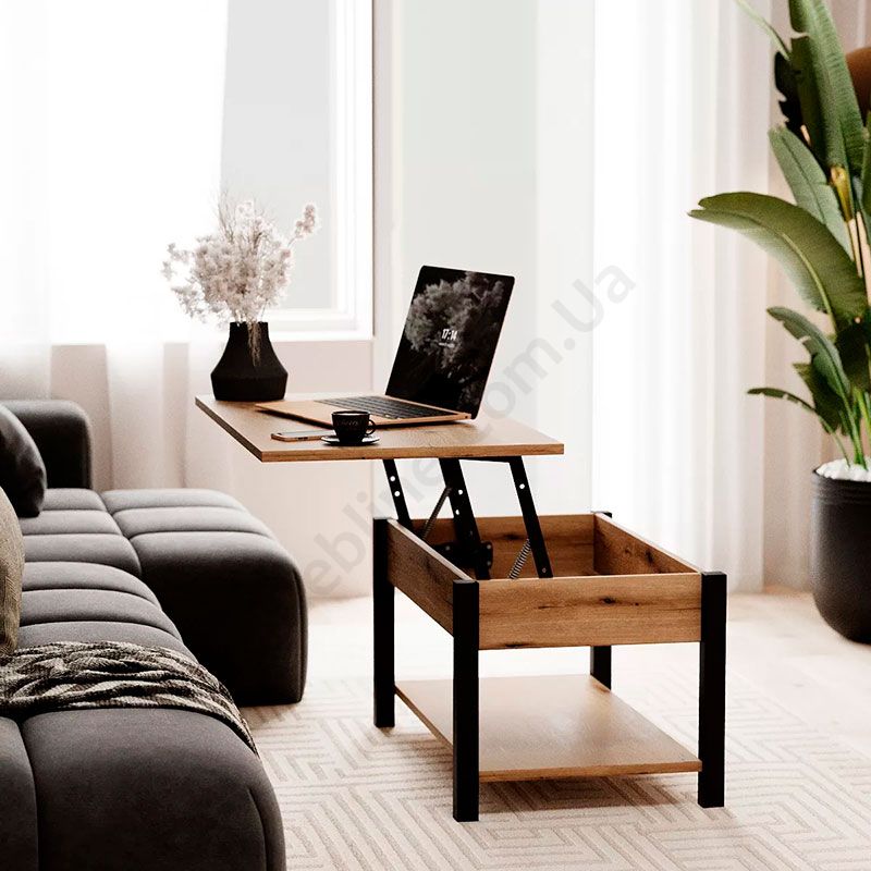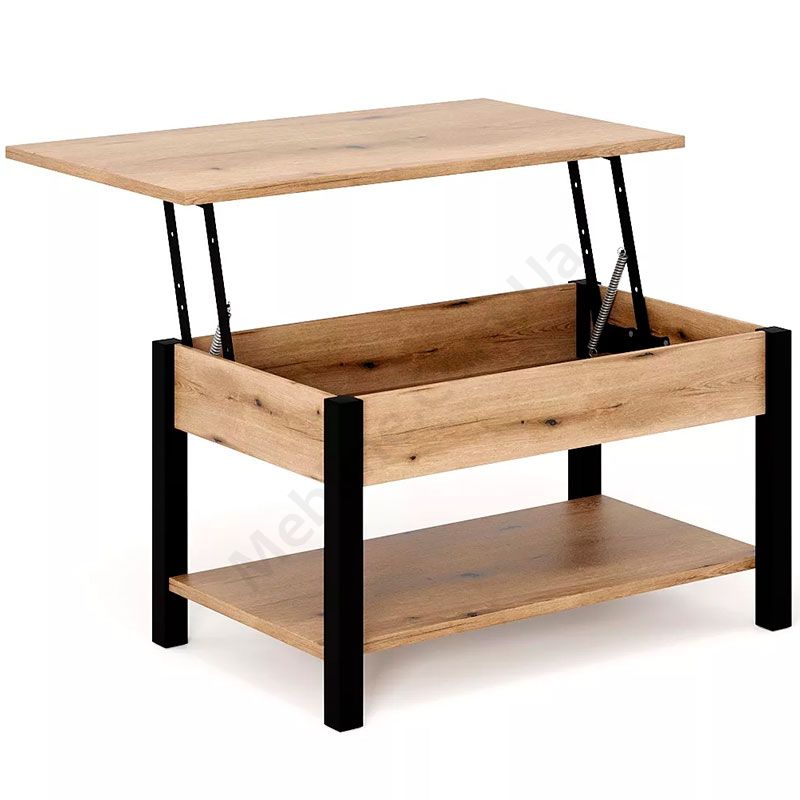 Журнальний стіл з підйомною стільницею на металевих ніжках.