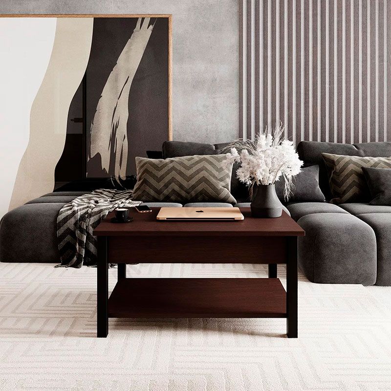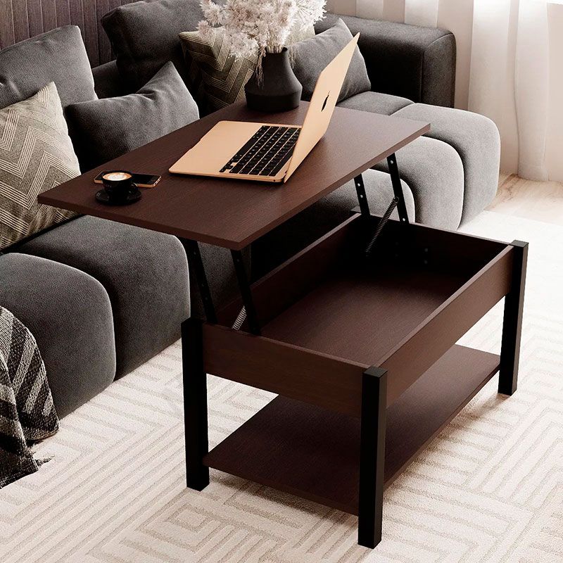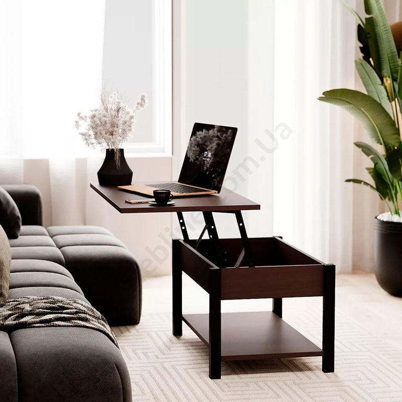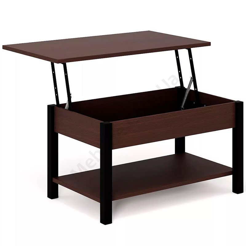 Журнальний стіл з підйомною стільницею на металевих ніжках.