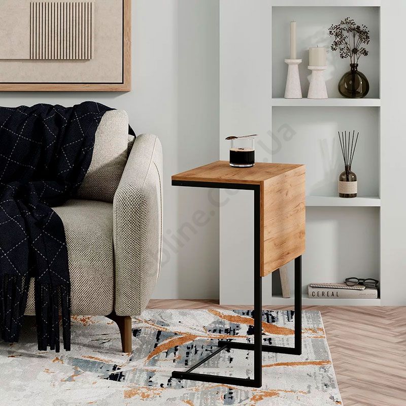 - Оригінальний магнітний механізм дозволяє легко і швидко розкласти приставний столик у журнальний.