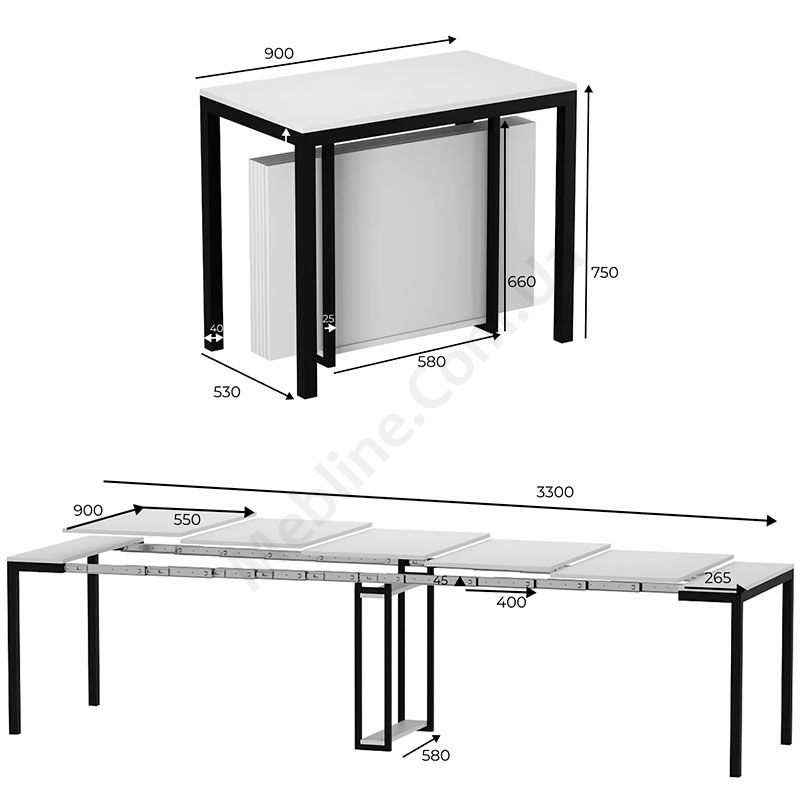- Розсувний механізм з металевих телескопічних напрямних товщиною 50 мм.