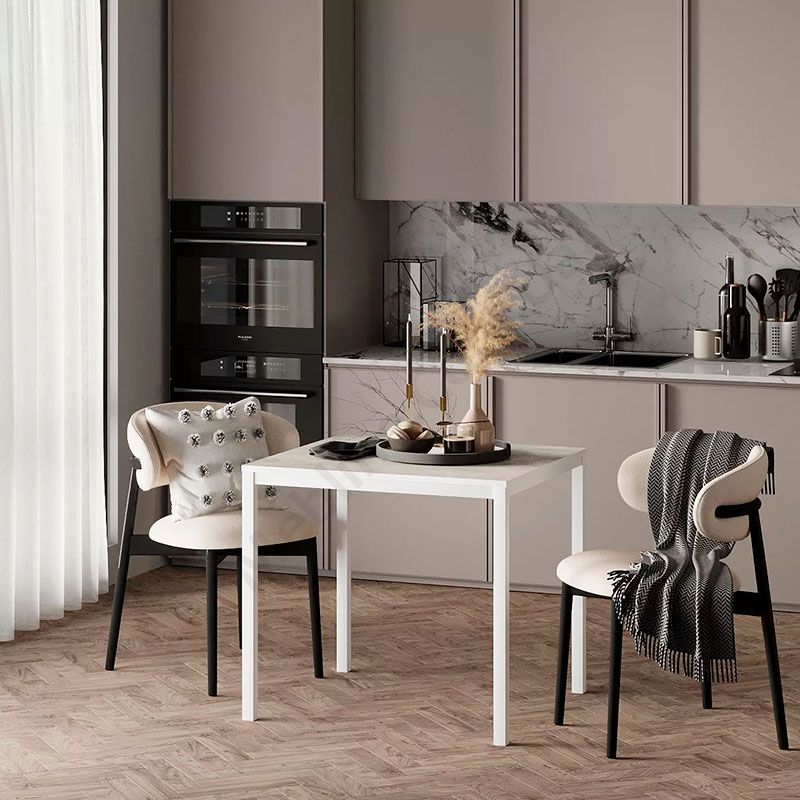 - Компактні розміри дозволяють розмістити стіл навіть на маленьких кухнях.