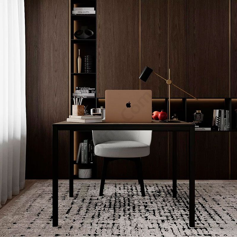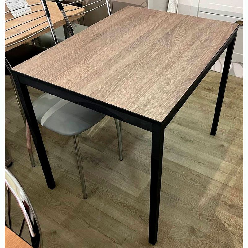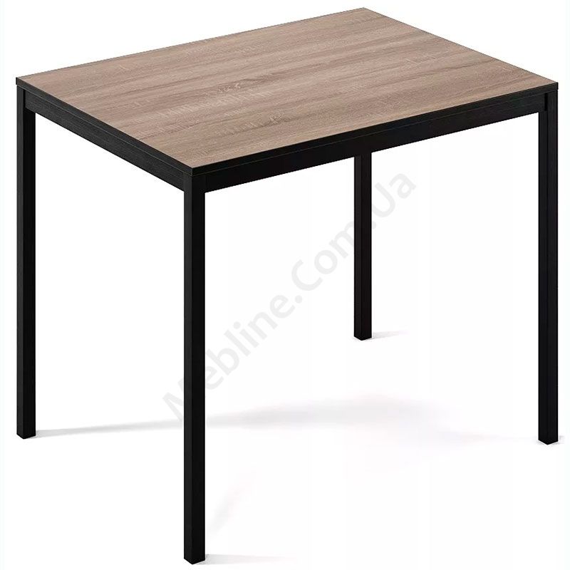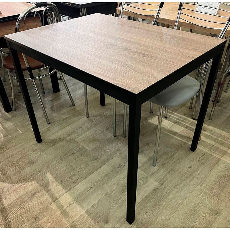 Нерозкладний прямокутний стіл на металевих ніжках.