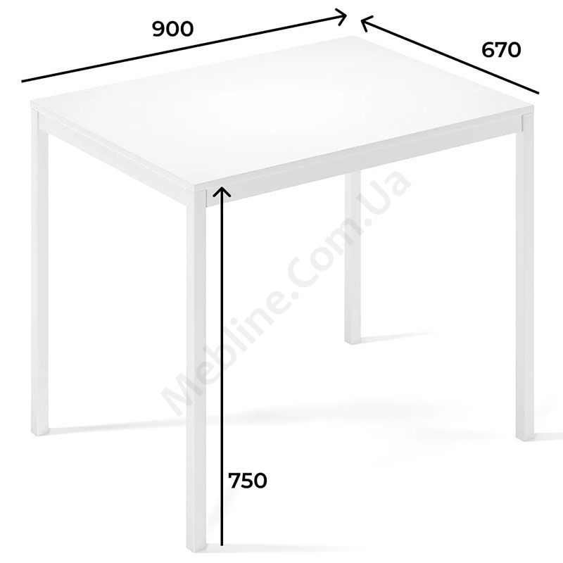 Нерозкладний прямокутний стіл на металевих ніжках.