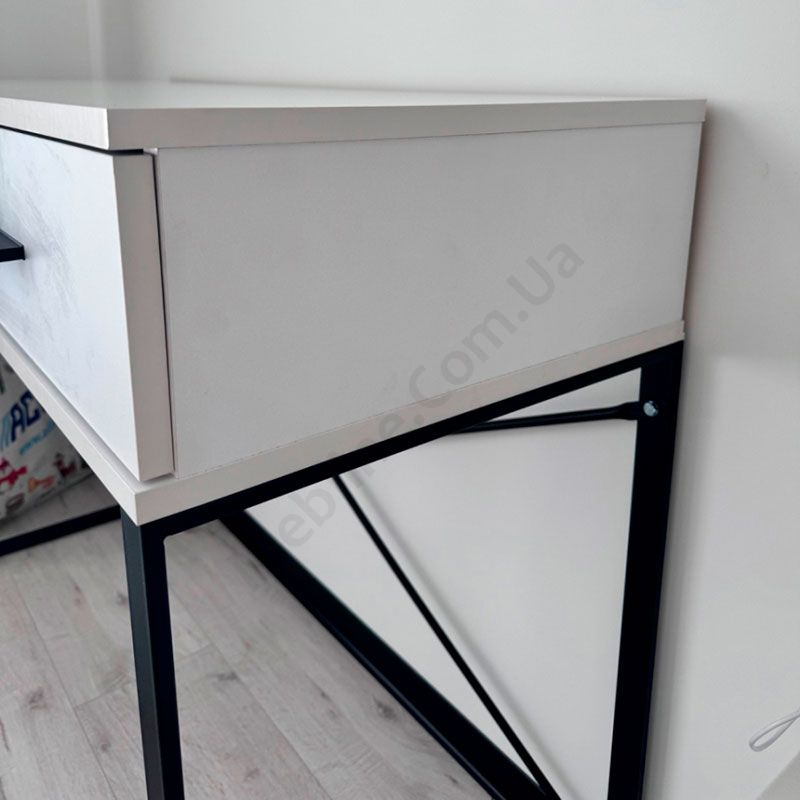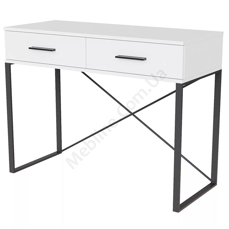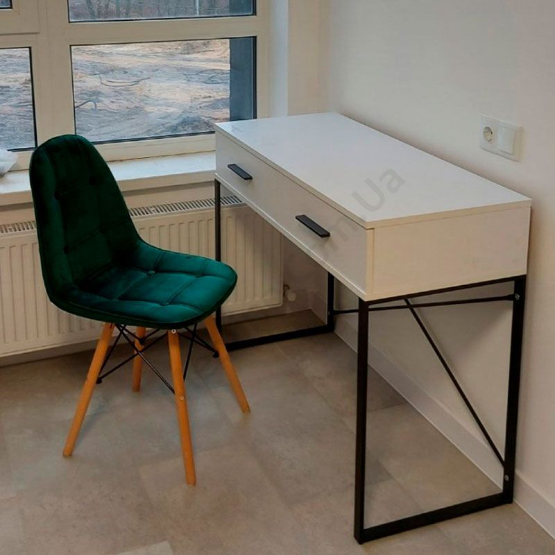 Туалетний стіл на металевих ніжках з двома висувними шухлядами.