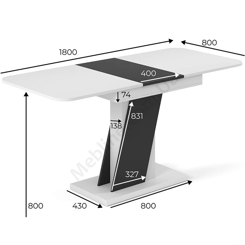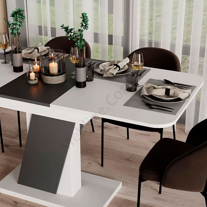- Легка трансформація стільниці завдяки вставці посередині.