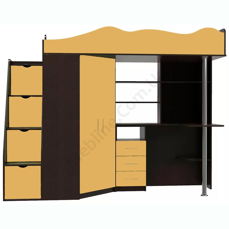 Ліжко горище дитяче Loft bed Binky DS37А Венге + Охра Жовта - ART IN HEAD