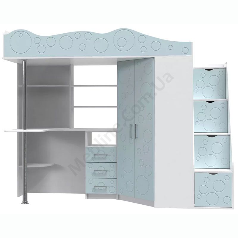 Ліжко горище дитяче Loft bed Binky DS37А Білий Діамант + Блакитна Лагуна - ART IN HEAD