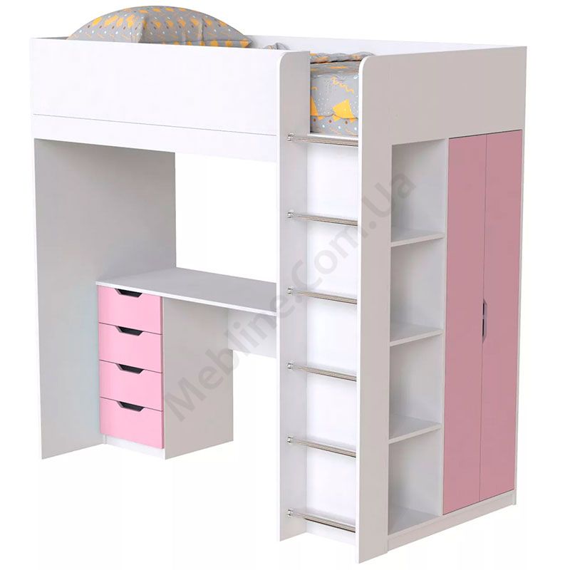 Дитяче ліжко горище Loft bed Binky DUS33 Білий Діамант + Рожевий