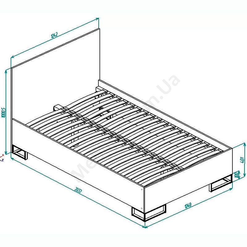 Односпальне ліжко на металевих ніжках.