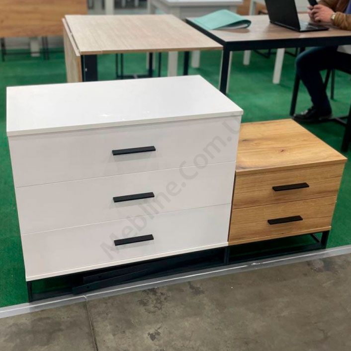 Комод на металевих ніжках з висувними шухлядами.