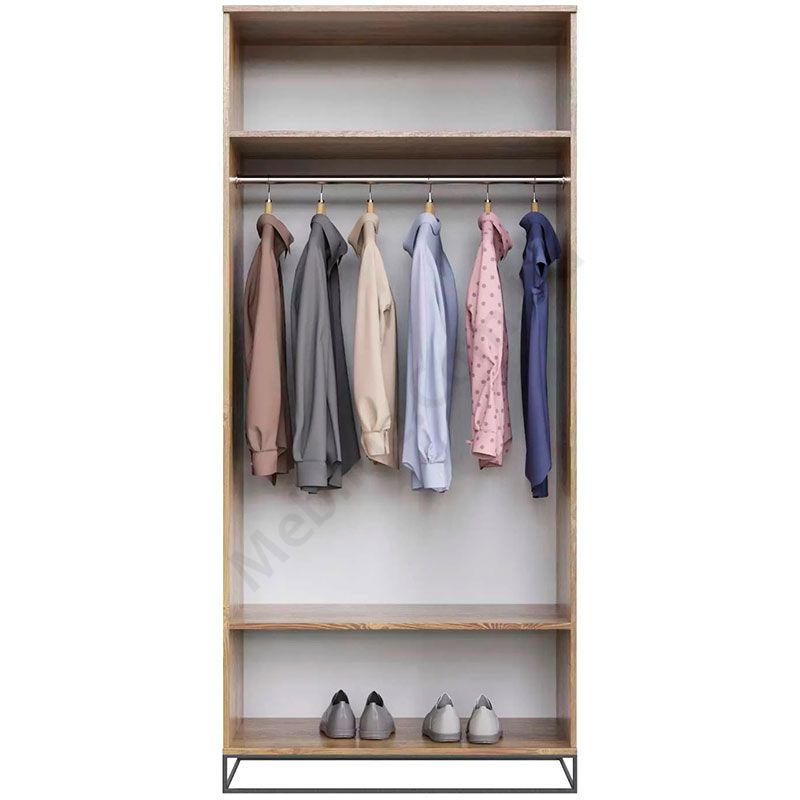 - За дверцятами штанга для одягу та дві полиці.