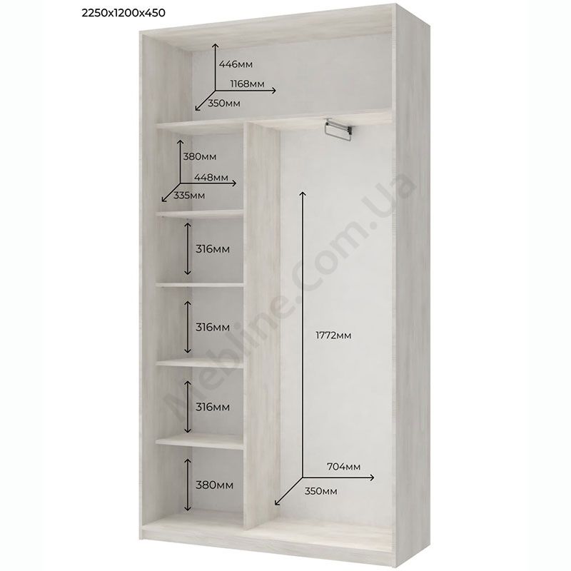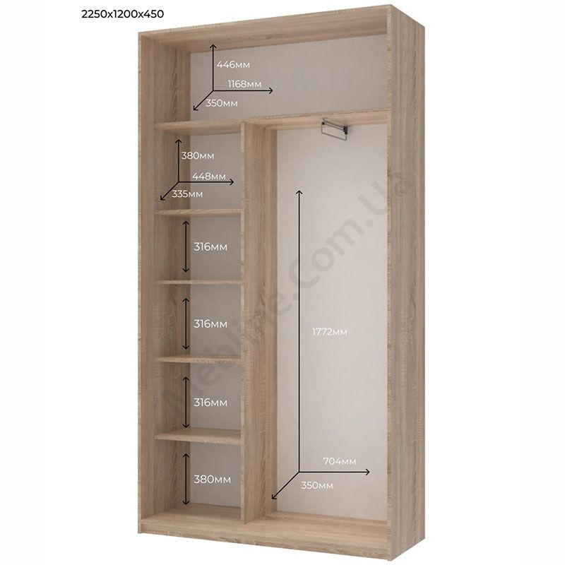 Дводверна шафа-купе шириною 120 см, глибиною 45 см, висотою 225 см.