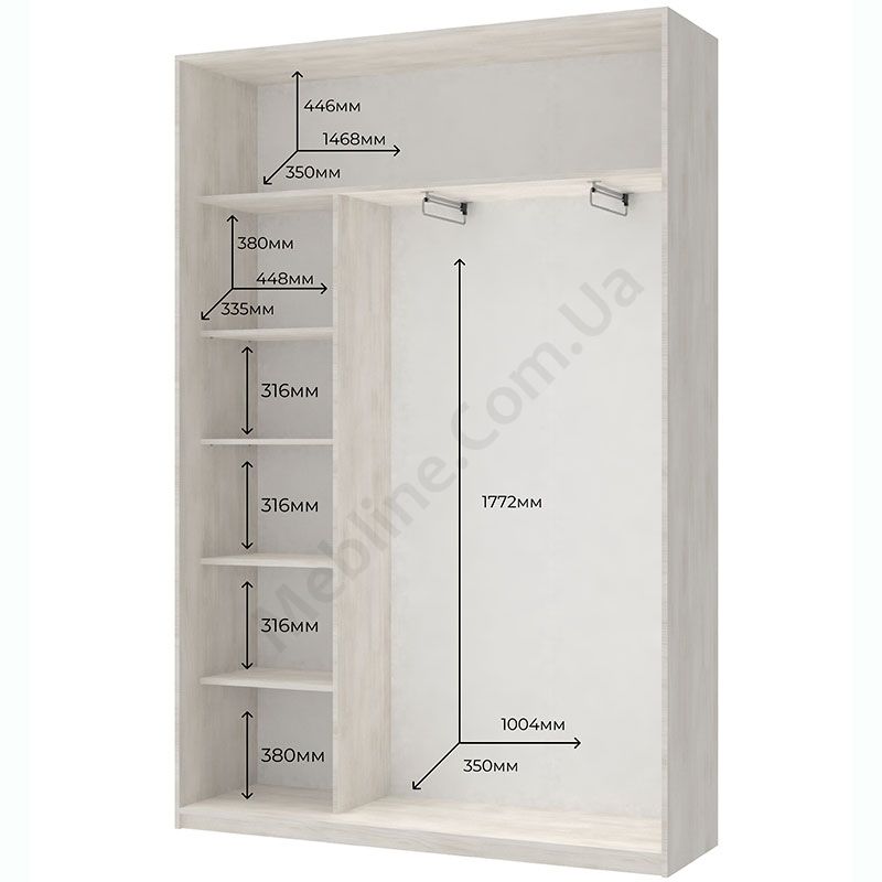 - Комплектується двома мікроліфтами для одягу та поличками.