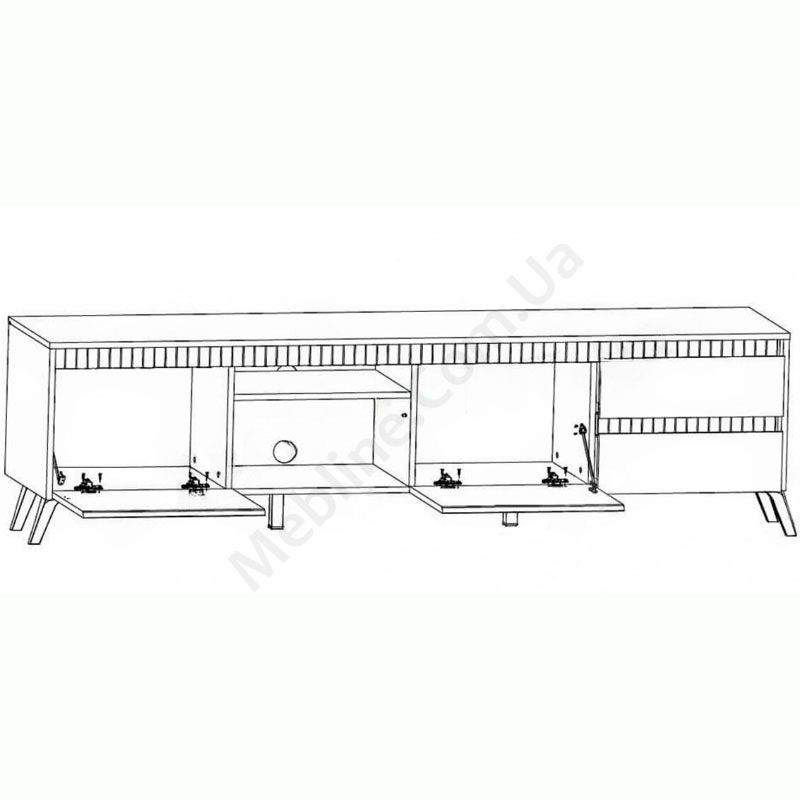 Тумба під телевізор з висувними шухлядами, полицями та дверцятами.
