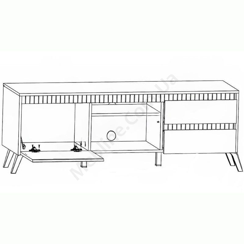 Тумба під телевізор з висувними шухлядами, полицями та дверцятами.