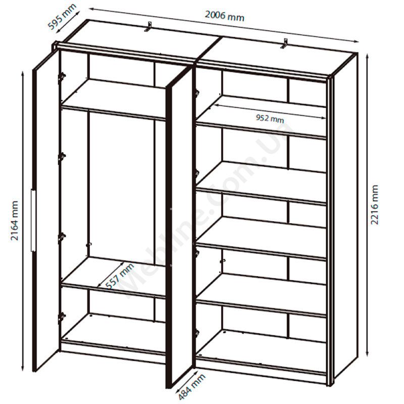 - Задня стінка виготовлена з ХДФ 2,5 мм білого кольору.