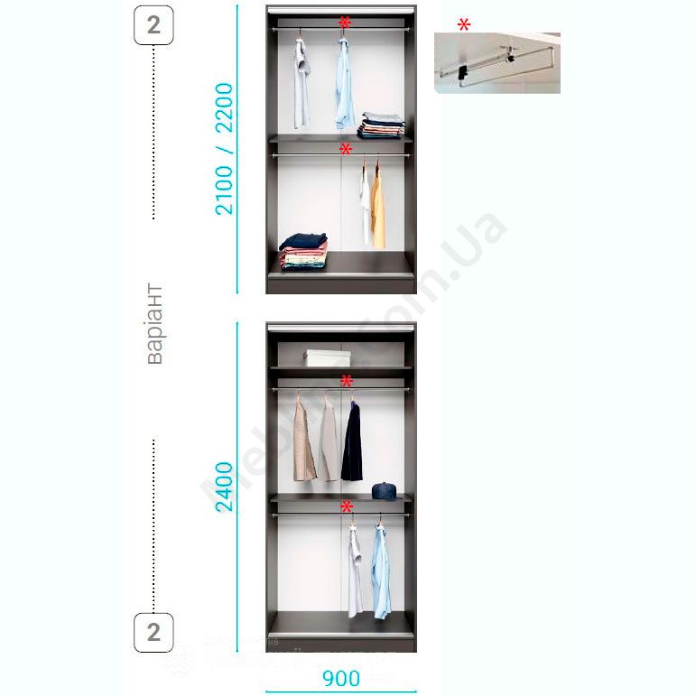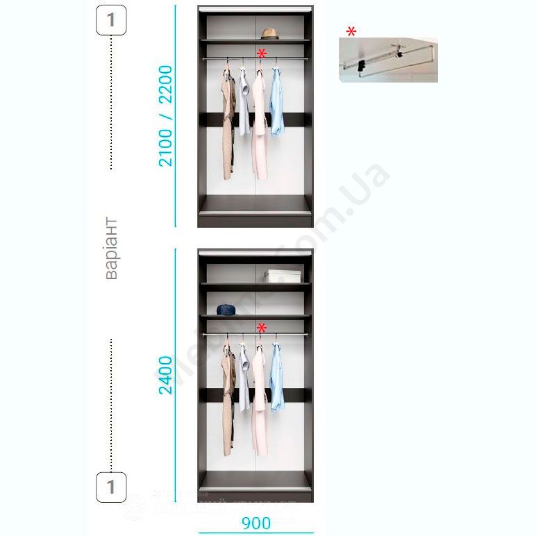 • Можливі два варіанти наповнення — з одним мікроліфтом для довгого одягу або з двома для короткого.