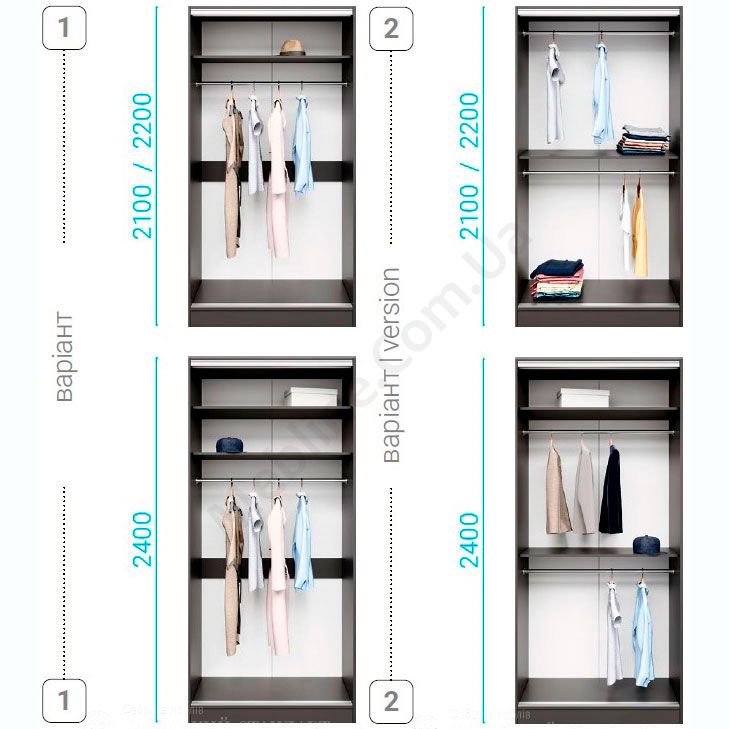 • Можливі два варіанти наповнення — з однією штангою для довгого одягу або з двома для короткого.