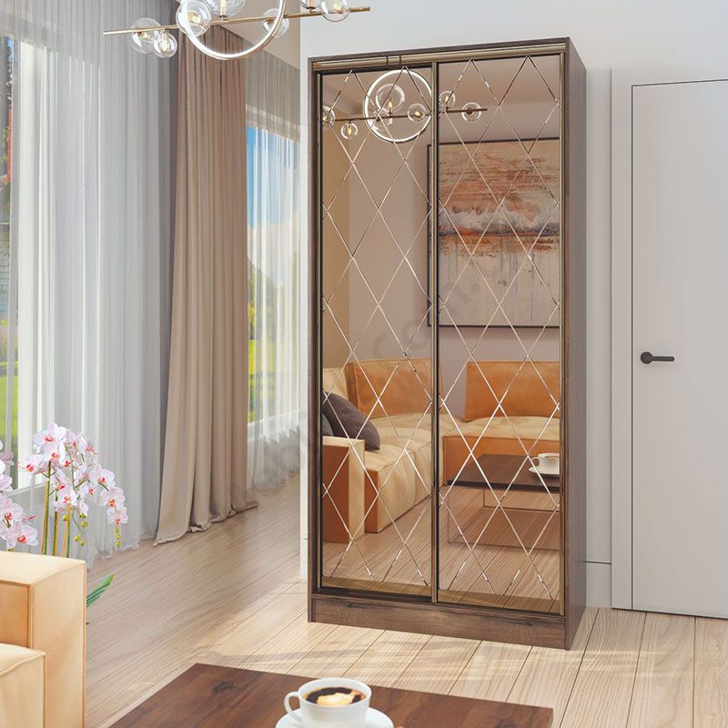 Дводверна шафа-купе шириною 110 см, глибиною 45 см, висотою 210, 220 чи 240 см.