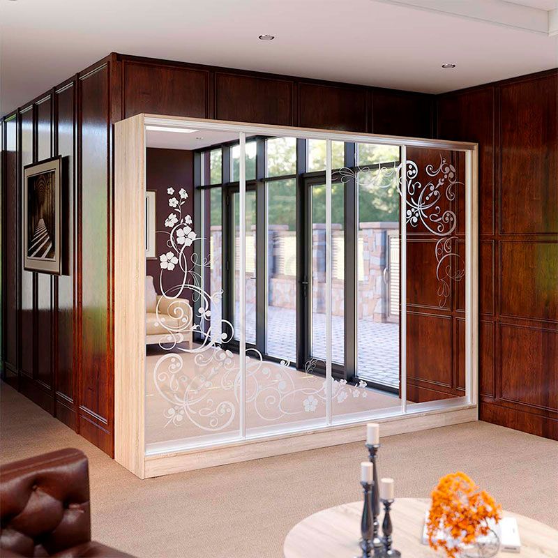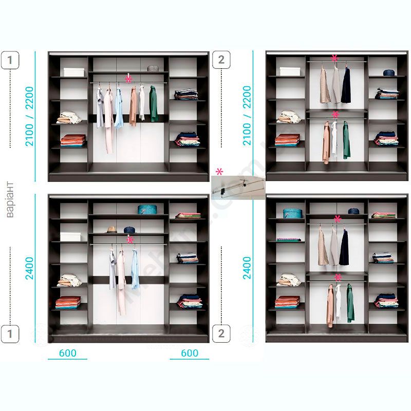 Тридверна або чотиридверна шафа-купе шириною 270 см, глибиною 45 см, висотою 210, 220 чи 240 см.