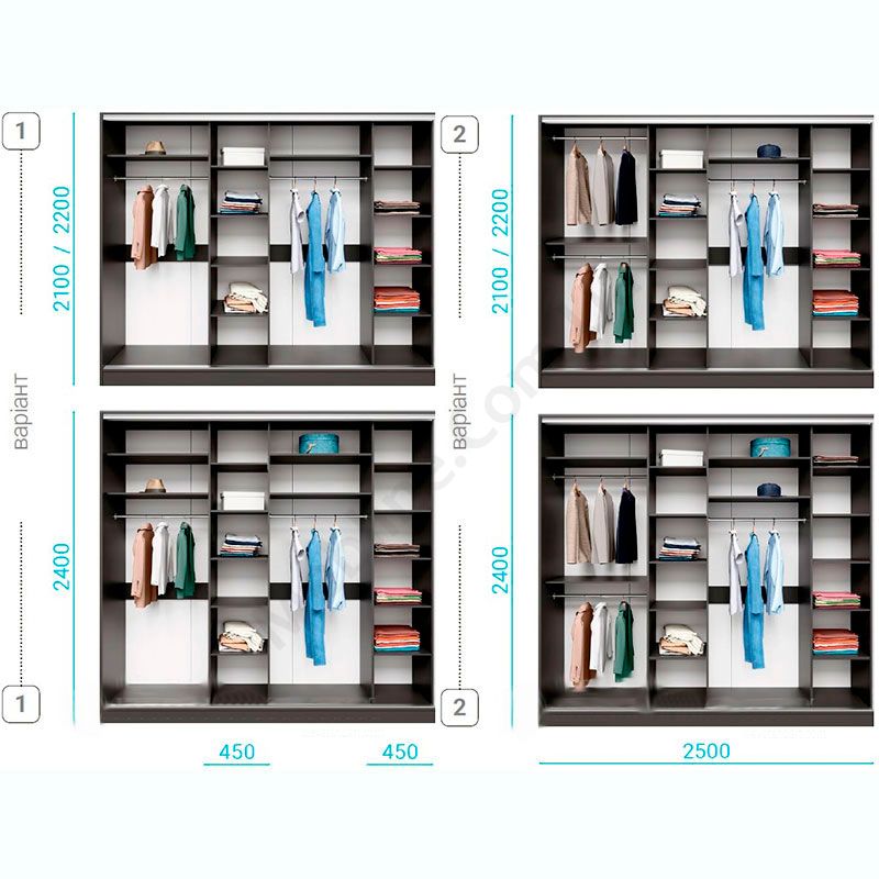 Тридверна або чотиридверна шафа-купе шириною 260 см, глибиною 60 см, висотою 210, 220 чи 240 см.