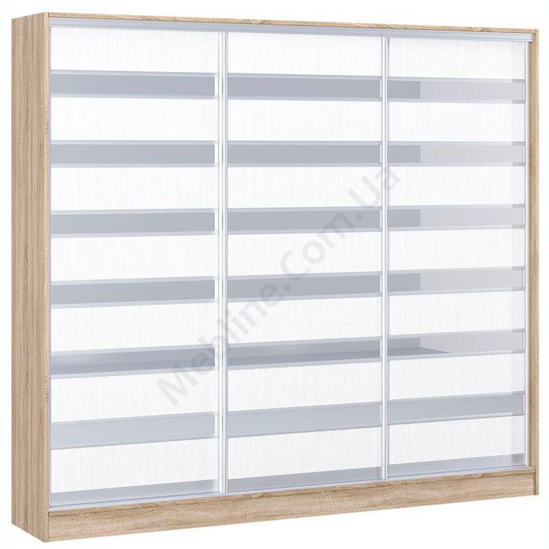 Тридверна шафа-купе шириною 230 см, глибиною 60 см, висотою 210, 220 чи 240 см.
